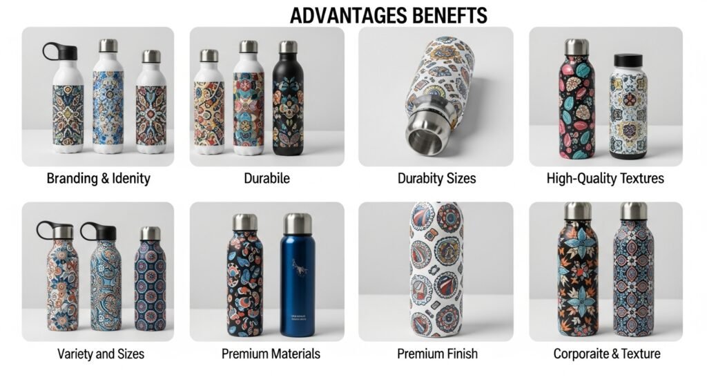 Premium stainless steel bottles with elegant printing. Ideal for corporate gifts and executive branding.